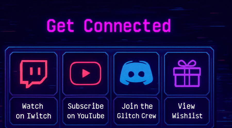 The Glitch Crew Discord is where all the weirdness happens off-stream. Game nights. Gear talk. Hype. Help. Memes.